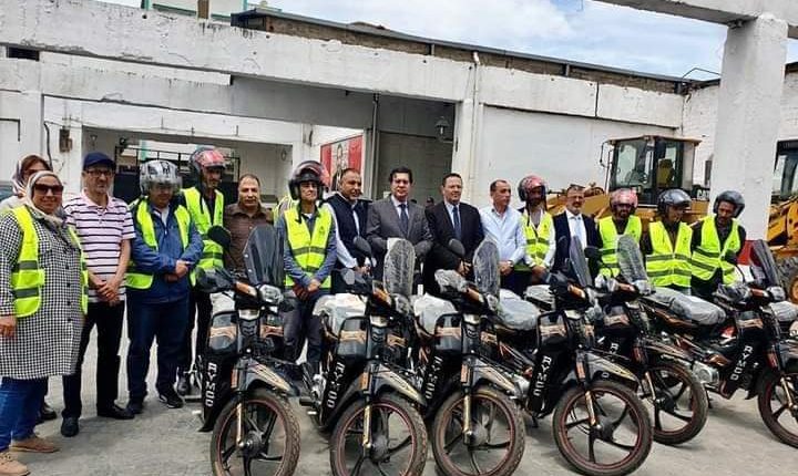 مصطفى البكوري يشرف على عملية توزيع الدراجات النارية على مراقبي خلية النظافة.ويؤكد أن قطاع النظافة يمثل مرآة المدينة و يبرز تموقعها و مؤهلاتها السياحية .