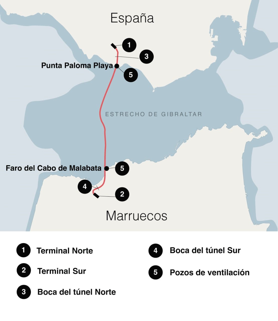 وكلاهما انطلق من الحاجة إلى ربط 14 كيلومترا تفصل إسبانيا عن المغرب . تم النظر في خيارين – جسر أو نفق – وتم اختيار بناء نفق تحت الماء، وهو مشروع أولي خضع منذ ذلك الحين للتعديلات. “إنه عمل فريد وله خصائص مختلفة عن عمل القناة الإنجليزية. وقال رافائيل غارسيا مونج ، مهندس الطرق والقنوات والموانئ المرتبط بالمشروع منذ سنوات كأمين عام لشركة SEGEGSA، لصحيفة El Independiente : “الأمر ليس هو نفسه على الإطلاق” .